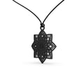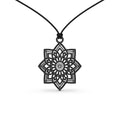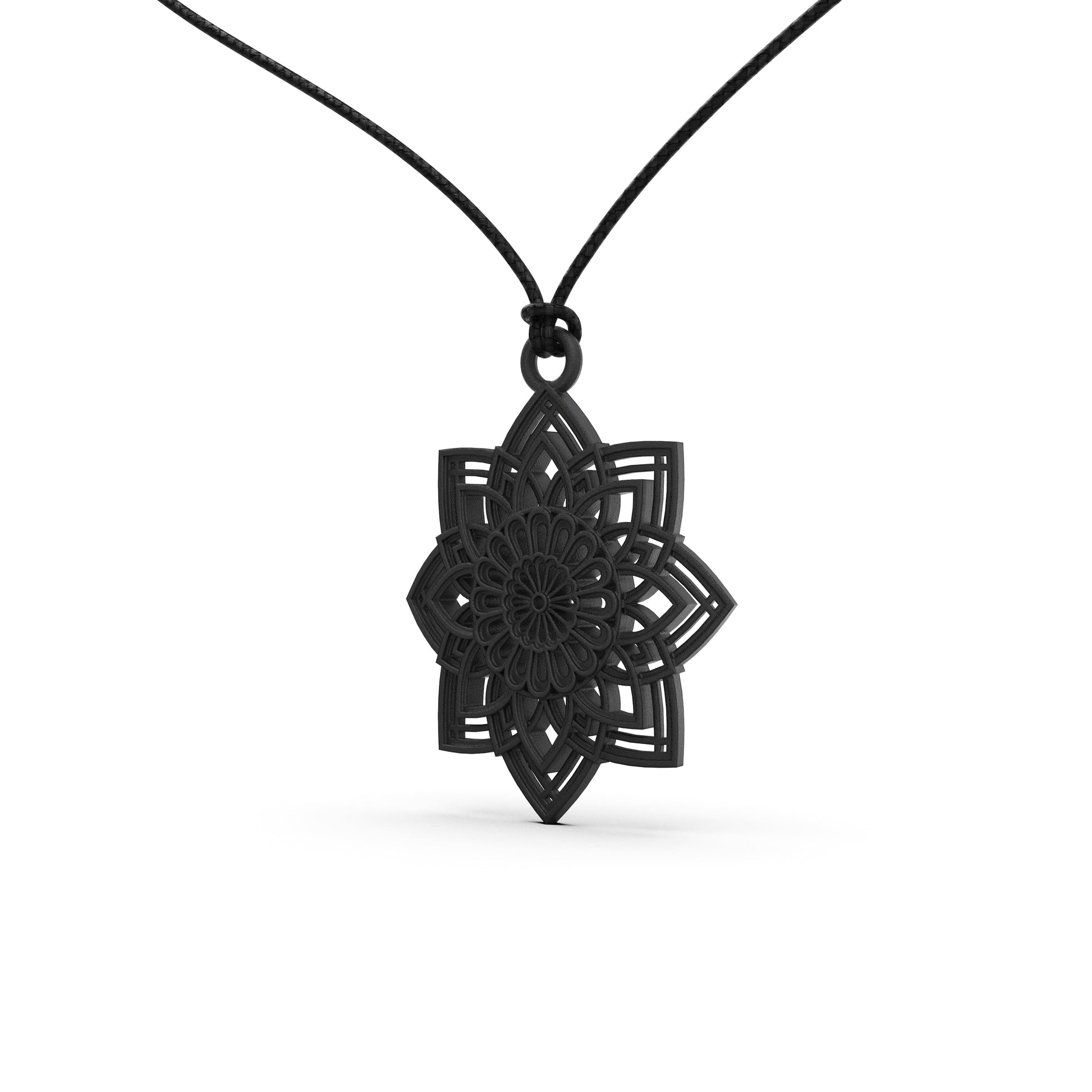 Il ciondolo Kaiya è una composizione geometrica che si sviluppa come un fiore astratto o un motivo architettonico.