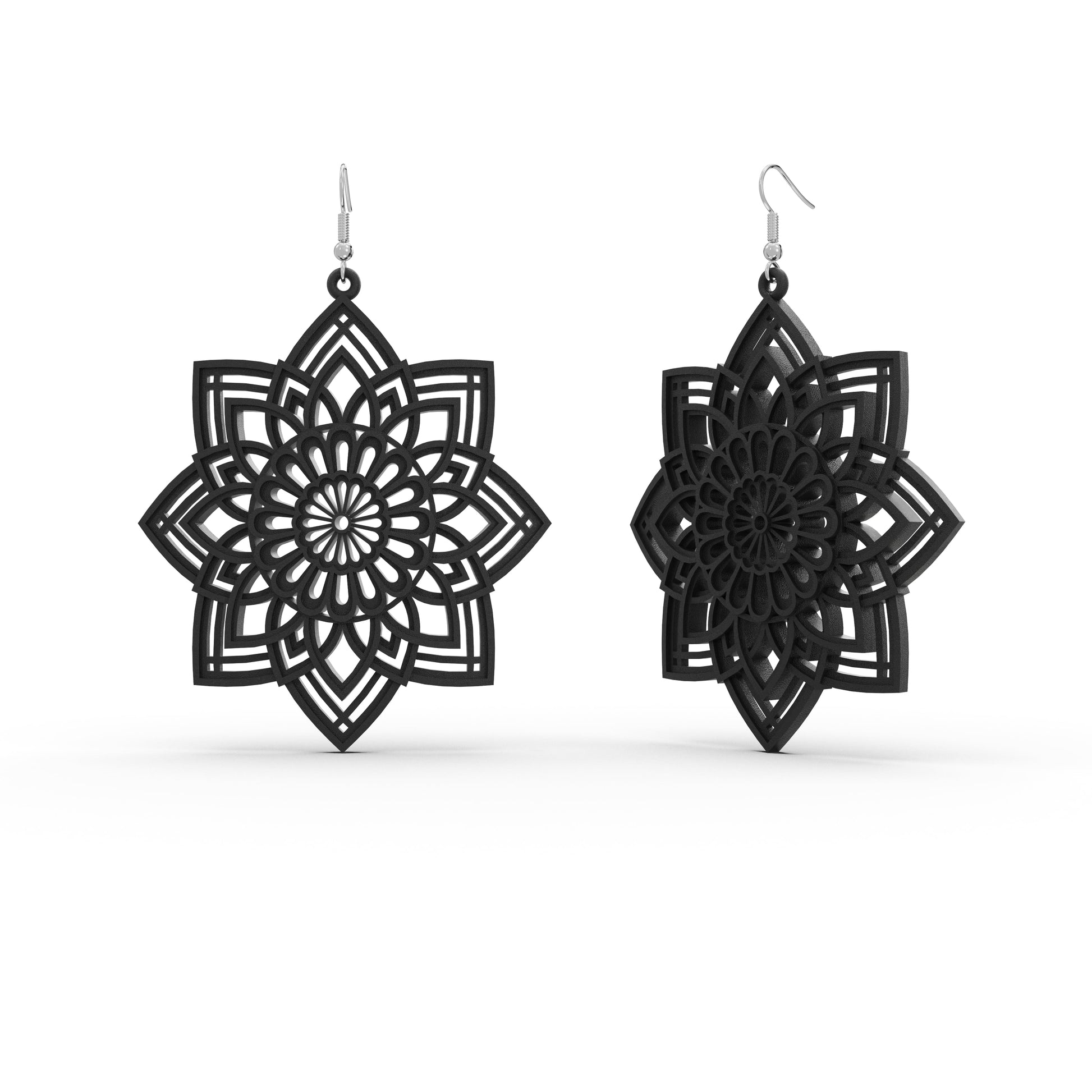 Gli orecchini Kaiya reinterpretano il mandala come elemento ornamentale contemporaneo.